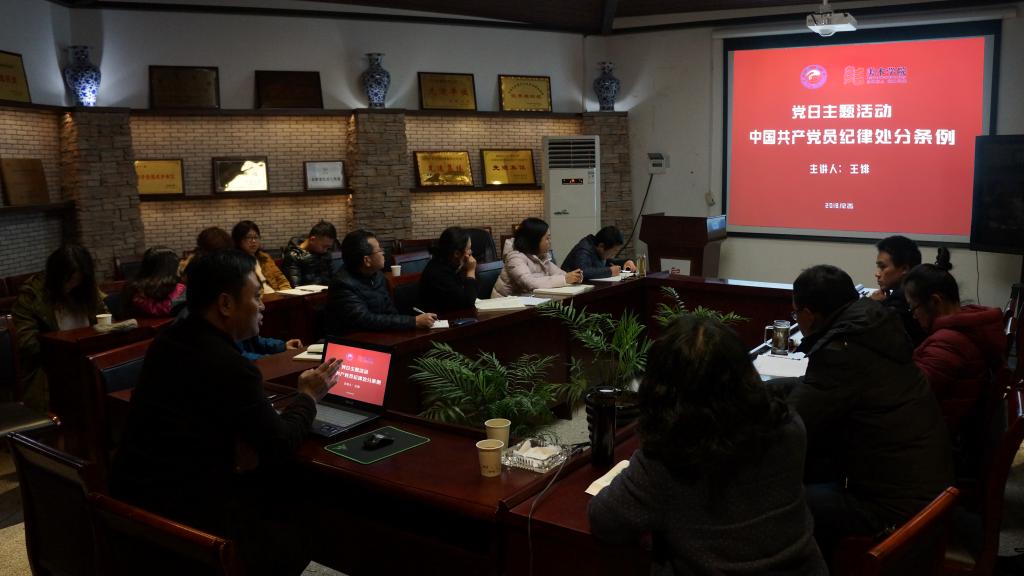 紧接着,王绯副校长带领我院教师党员一起学习《中国共产党中国共产党纪律处分条例》,从为何要再次修订《条例》、新《条例》的修订内容、新《条例》学习重点、怎样认真遵照执行《条例》和违反新《条例》典型案例五个方面对《条例》进行了深入剖析,特别是多次利用身边党员触碰纪律条例规定的案例提醒教育教师党员,在工作、学习、生活以纪律规定约束自己。通过全面系统讲解条例,让我院教工党员们深刻了解了新《条例》的变化和主体内容,明白了自己在工作学习生活中如何遵守《条例》,不可触碰法纪法规底线和红线。