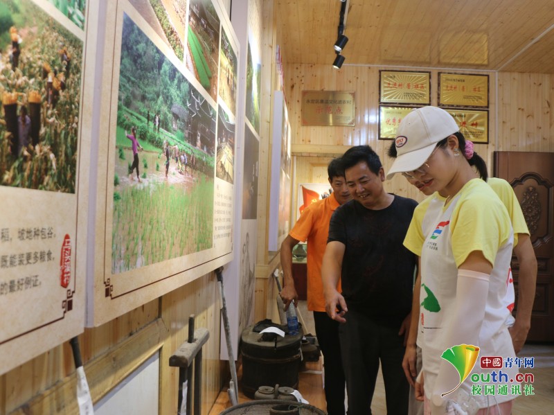 图为村主任全炳云带领队员参观村史馆,讲解马头溪村的发展历程及村里的特色文化等。中国青年网通讯员 李景芬 摄
