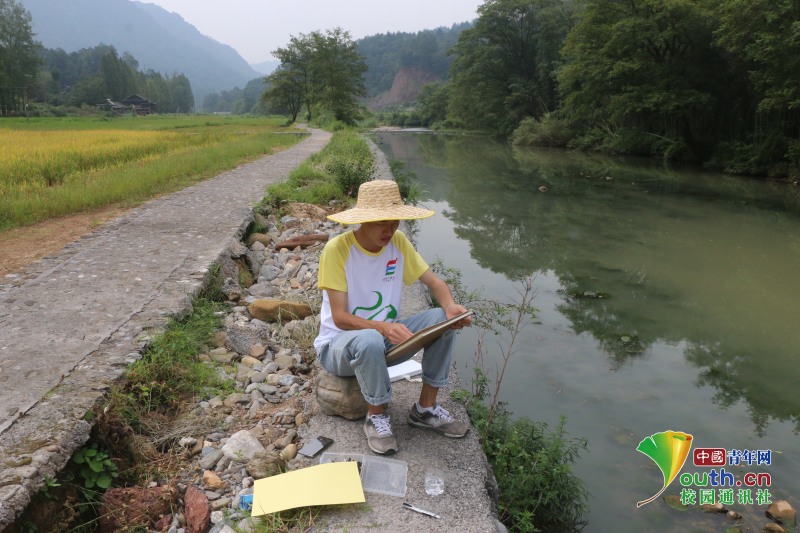 图为志愿者用画笔记录马头溪村的秀美风光。中国青年网通讯员 李景芬 摄