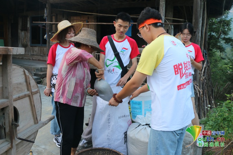 图为志愿者在走访过程中,帮助村民做农活,收谷子。中国青年网通讯员 李景芬 摄