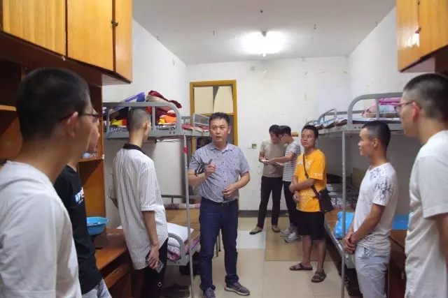 院长刘俊、党总支书记王文广、学工办老师们及新生班主任、辅导员以及学生会干部下到新生宿舍深入了解学生及宿舍环境。