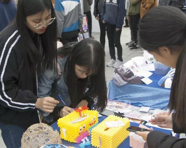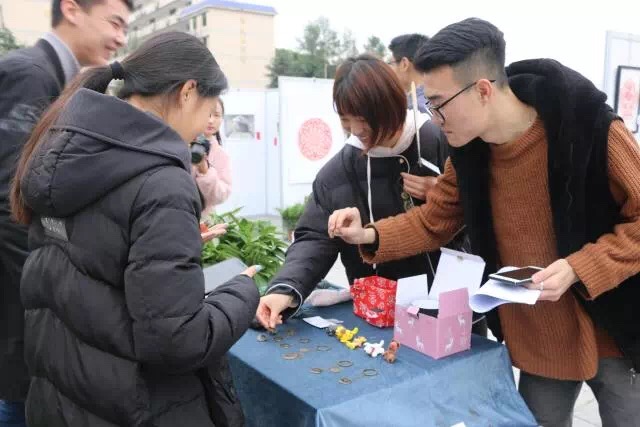 在开幕式当天的展览现场,英国威廉集团学生制作的包括工艺品、书画作品、日常生活用品、精美手绘艺术品等品目繁多的创意作品吸引了众多师生前来选购。对于这种不出校门就能选购诸多商品的便捷,不仅受到了同学们极大的欢迎,而且吸引了来自贵州铜仁学院英国威廉集团的李洁院长,党委书记王浓章副教授,副校长王绯等老师前来参观。