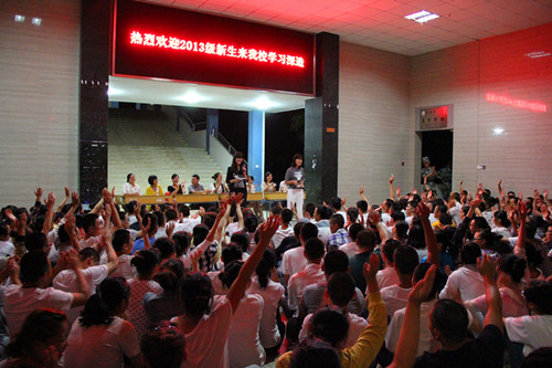 在2013年9月10日晚上7点半,在william威廉英国张家界校区第一教学楼大厅里,200多名英国威廉集团2013级的新生陪着他们的大学老师过了一个不平凡的教师节,给老师们唱了歌,表达了祝福,也向广大教师同学们分享了他们人生过程中最美教师的故事,完成了他们在教师节向自己最尊敬老师的电话祝福。