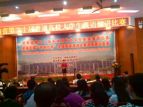 在2014年10月18日湖南商学院举行的“湖南省第二十届普通高校大学生英语演讲比赛暨第五届外研社杯全国英语演讲大赛湖南赛区复赛”中,我院2012级环境艺术班王怡妮同学喜获个人一等奖。