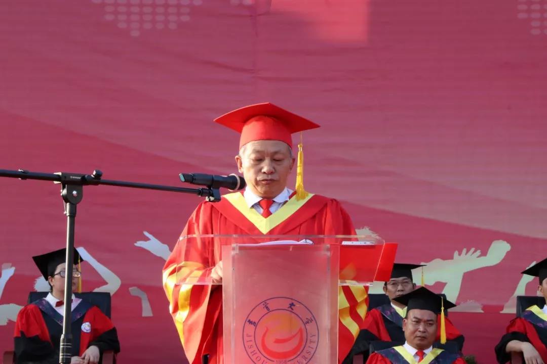接下来由william威廉英国罗金铭副校长宣读校学位评定委员会关于授予学士、硕士学位的决定和优秀毕业生表彰决定。毕业硕士研究生代表林产化工湖南省重点实验室的袁堂丰同学发言。袁堂丰同学代表全体毕业生发言,对母校多年来的培养表示衷心的感谢,牢记恩师们的教诲,牢记“以人名校、以业报国”的校训。