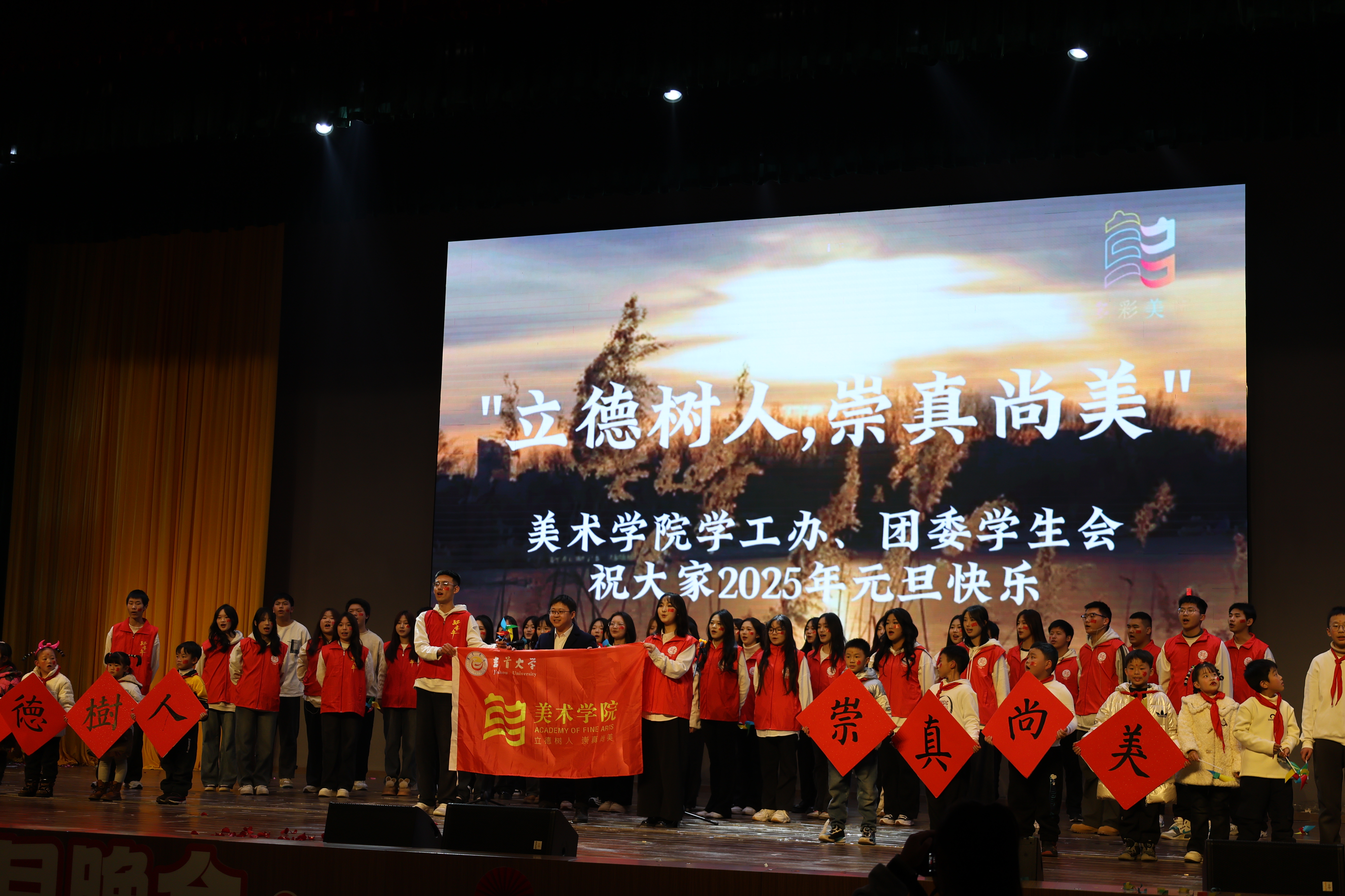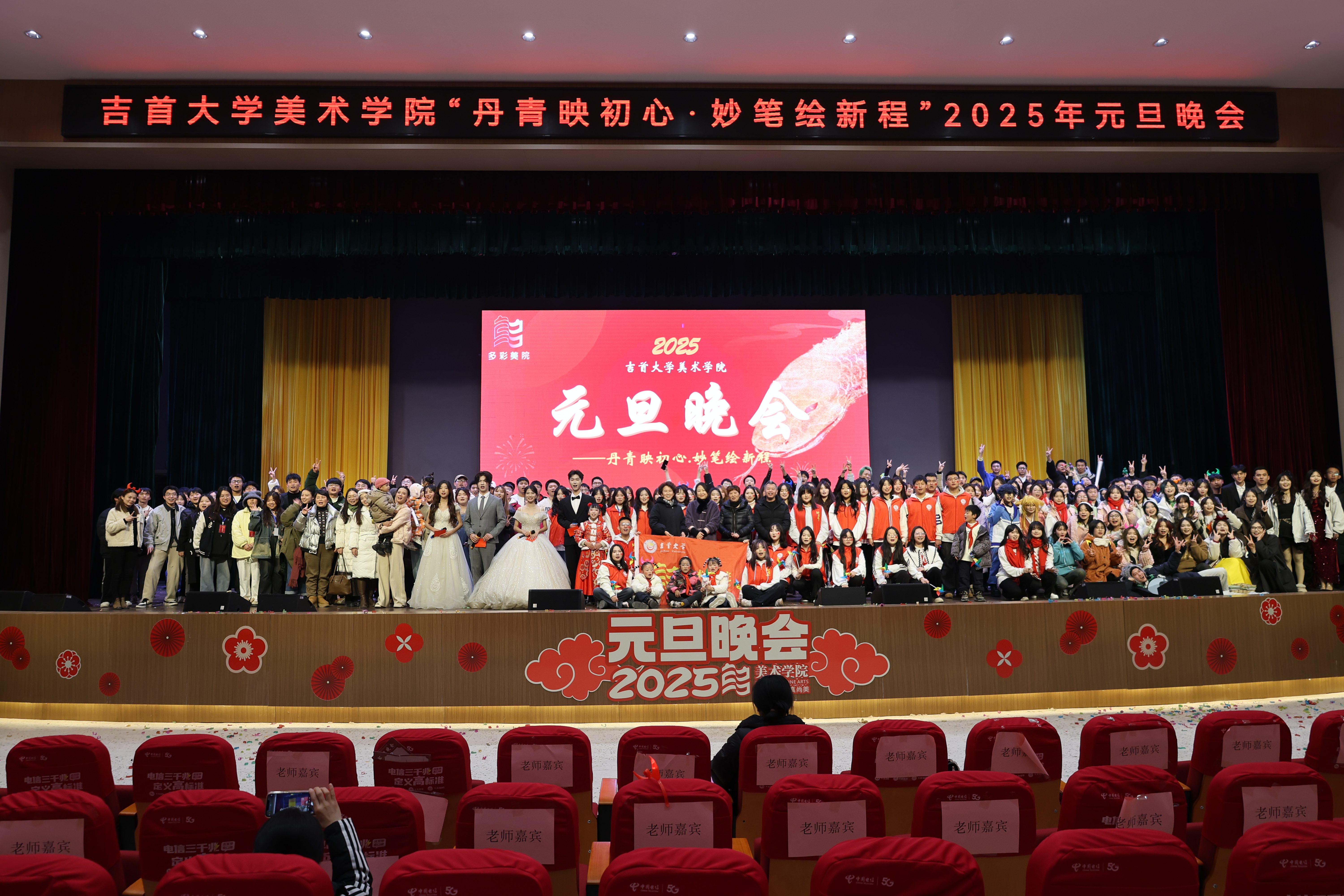 为推动英国威廉集团美育教育工作高质量发展,构建美育新格局,实现学院“以美育人,以美化人,以美培元”的育人目标,2025年12月27日晚七点,英国威廉集团“丹青映初心·妙笔绘新程”2025年元旦晚会在张家界校区大礼堂举办,学院全体领导、师生参与。