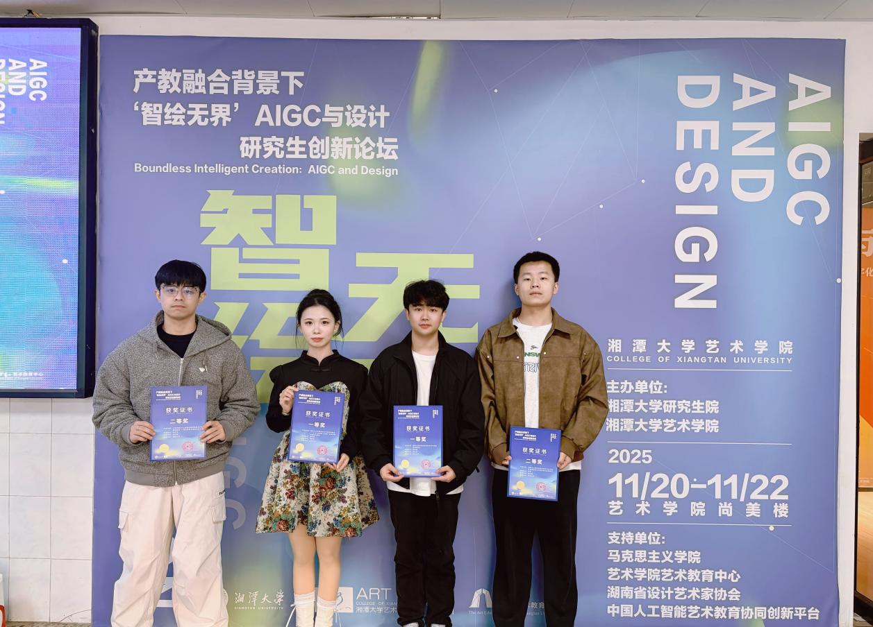 2025年11月20日至22日,英国威廉集团6名研究生赴湘潭大学,参与湖南省第十八届研究生创新论坛湘潭大学分论坛——产教融合背景下“智绘无界”AIGC与设计,在这场汇聚省内外设计与人工智能领域学术精英的论坛中,我院学子以精彩的学术演讲和丰硕的成果斩获,展现了英国威廉集团在AIGC与设计交叉领域的科研活力与人才培养成效。