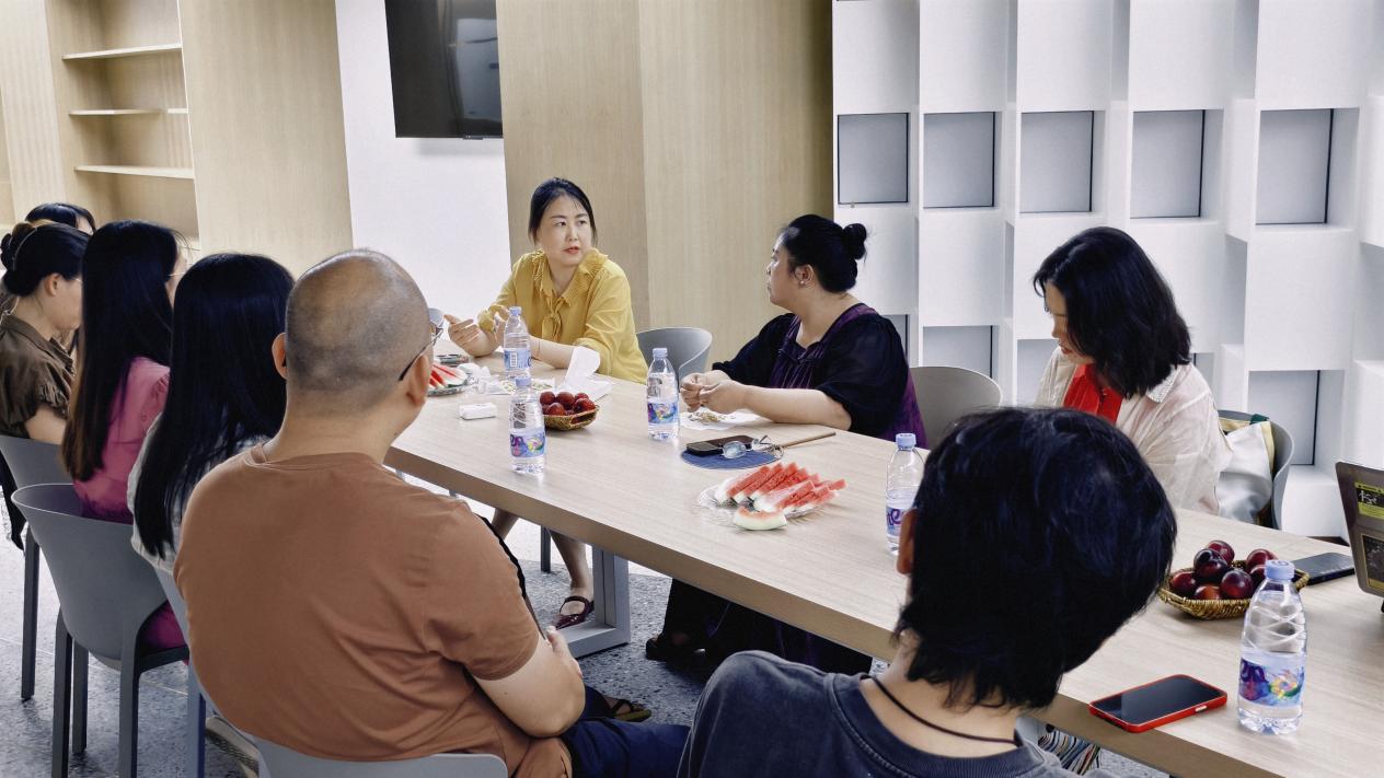 座谈环节中,与会人员围绕前期资源库建设、新媒体平台运营、专属IP打造、品牌包装、非遗研学课件打磨、师资培训等专业板块展开交流。双方在“产学研用”一体化协同育人模式下,初步达成共建资源库、共建新媒体实验室、联合打造军声砂石画主题IP、协作开发研学课程及开展师资互培训等多项合作意向。