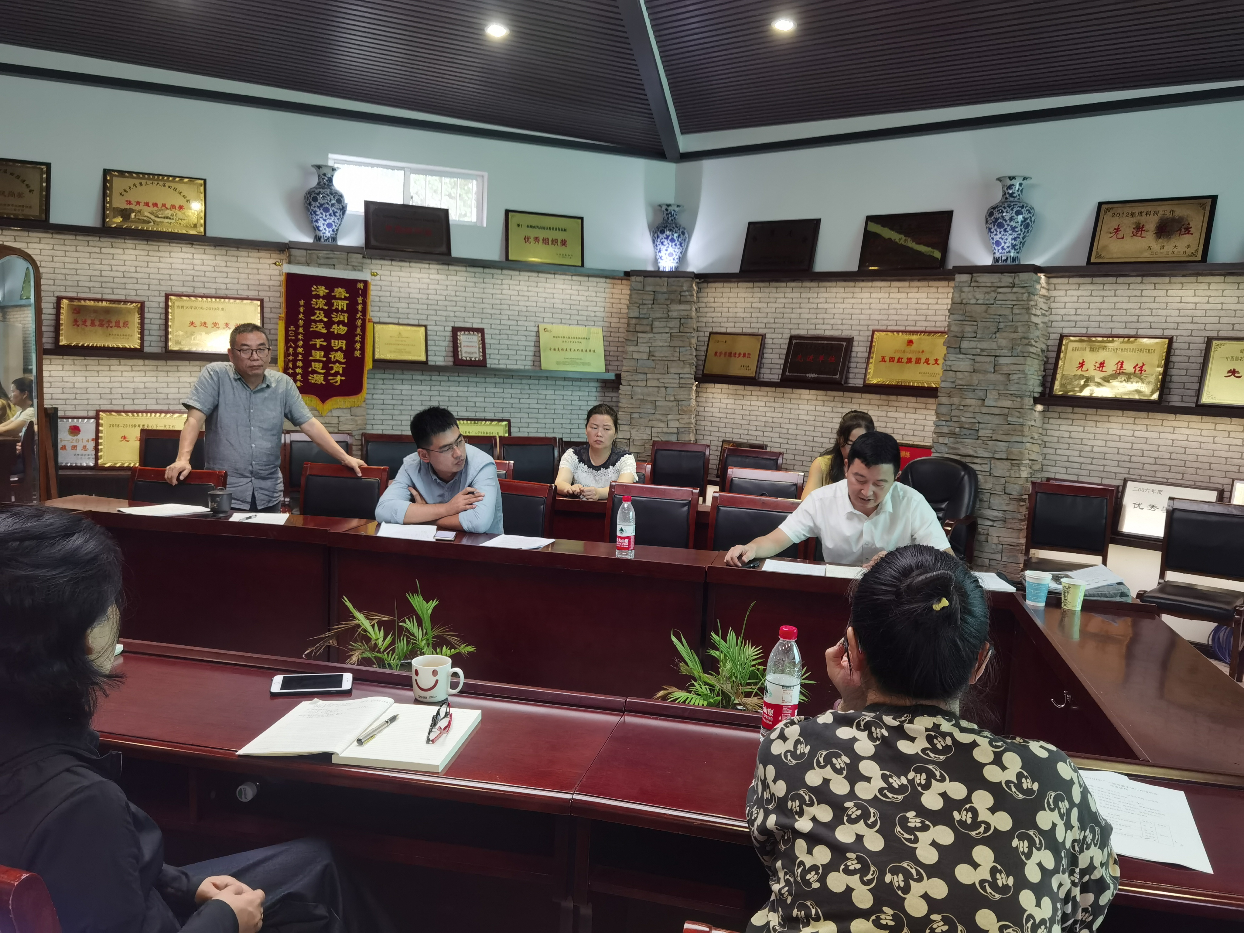 王浓章书记作会议总结发言,她指出,申报工作时间紧任务重,老师们都非常辛苦,希望在座老师更多参与,学院办公室做好后勤工作,为加班的老师们提供好服务。目前的申报材料在措辞及凝练方面仍有待进一步打磨,多向成功的学院以及张主任请教,尽可能将材料打磨完善。