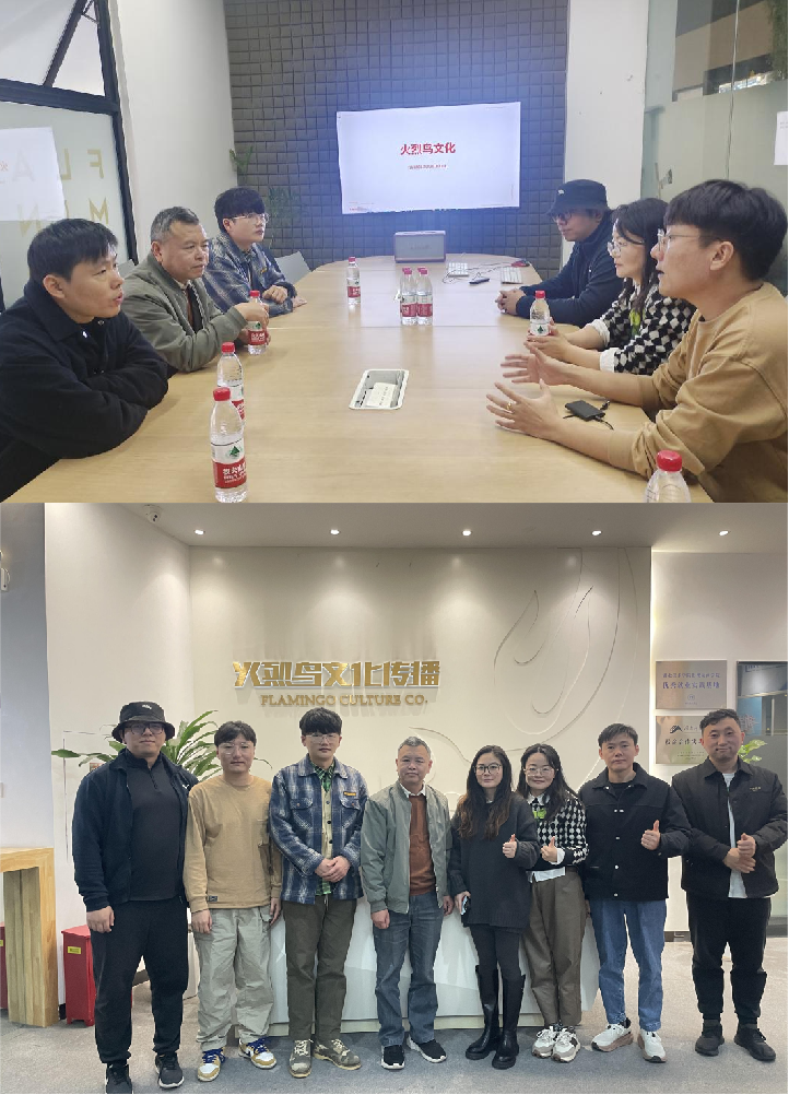 本次活动首先走访了火烈鸟文化公司(FLAMINGO CULTURE CO.),该公司是一家以原创、品质、创新为核心竞争力的文化传播有限责任公司,自创立以来,一直致力于为全国一线卫视及各大顶级网络平台输出优质视频内容,在业内积累了极佳的口碑。企业负责人详细介绍了公司的发展历程、核心业务、成功案例以及未来规划,随后,双方就数字媒体艺术专业的人才培养、课程设置、实习实训、就业指导等方面进行了深入交流与探讨。