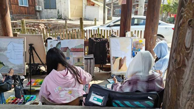 同学们满怀对艺术的热爱与向往,踏足这片令人心醉的乡土。他们手中的画笔,不仅是与世界沟通的桥梁,更是心灵的寄托与梦想的舞台。在这里,同学们可以寻找灵感、捕捉光影,用画笔记录下每一个触动心灵的瞬间,还可以更深入地与这片土地的人文风情和古老村落对话,感受着岁月的沉淀与历史的厚重。创作出具有古韵和特色的作品,还可以感受到大自然的无限魅力,将其融入到作品中,使画面更加生动自然。