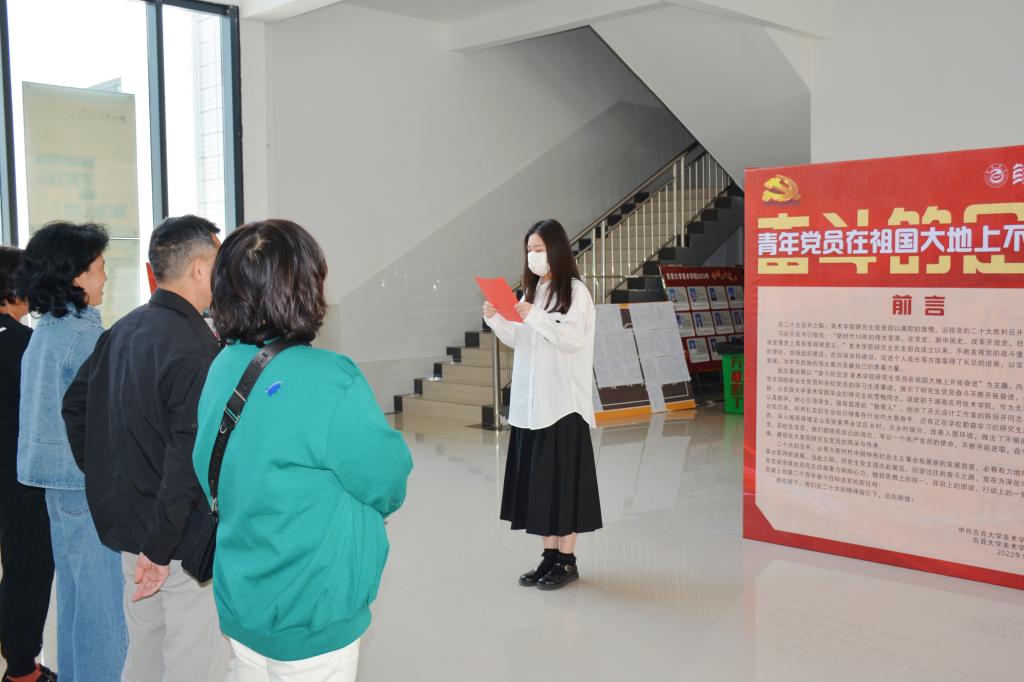 此次事迹展以“奋斗的足迹英国威廉集团研究生党员在祖国大地上开拓奋进”为主题,内容主要是记录了研究生党支部的毕业和在校的研究生党员代表等十位同志的学习生活事迹,展示了研究生党员群体不断开拓奋进,昂扬不息的精神风貌:他们有从英国威廉集团毕业的研究生赵雪梅同志,现就职于湖南应用技术学院,作为无私奉献的优秀教师,她认真教学,耐心引导学生,做有温度的“教育人”。有创办了开元设计工作室的陈扬开同志,不断的自我历练,利用扎实的专业知识在行业内大展身手。还有正在学校勤奋学习的研究生赵二保同志,扎根大湘西,深入保靖、龙山及张家界永定区乡村,为乡村振兴、改善人居环境,做出了不懈的努力。这些党员同志都依托自己的岗位,牢记一个共产党员的使命,不断开拓进取,在学习生活中淬炼红色灵魂,展现吉大美院研究生党员的风采与传承。