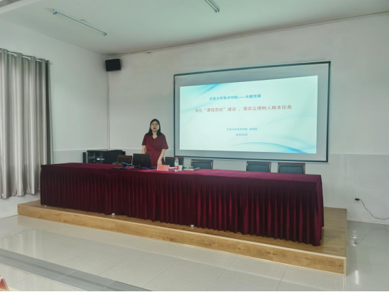 院长李婷婷从“专业课程融入思政工作的教学设计理念与方法”角度出发,以“为什么要课程思政”和“专业课程融入思政工作的教学设计理念与方法”两个方面,通过政策解读、案例讲解、示范课堂、理论方法及学院具体行动,向全体教职工介绍了如何将思政融入专业课程,如何做好学生思政教育,强调要进一步全面落实习近平总书记重要讲话精神,把课程思政工作全面贯彻到教育教学全过程,实现全程、全方位立德育人。