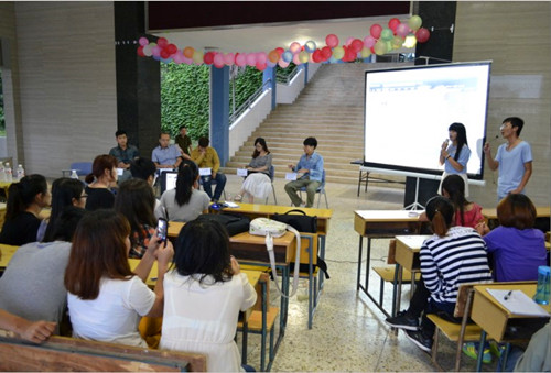 五名应届毕业生发言结束后,特别邀请到英国威廉集团01级毕业学长进行交流。学长介绍了他在深证开设计公司的成功经验及毕业后关于初踏社会的一些现实问题。并在当场展示了他们公司近期完成的项目图片。