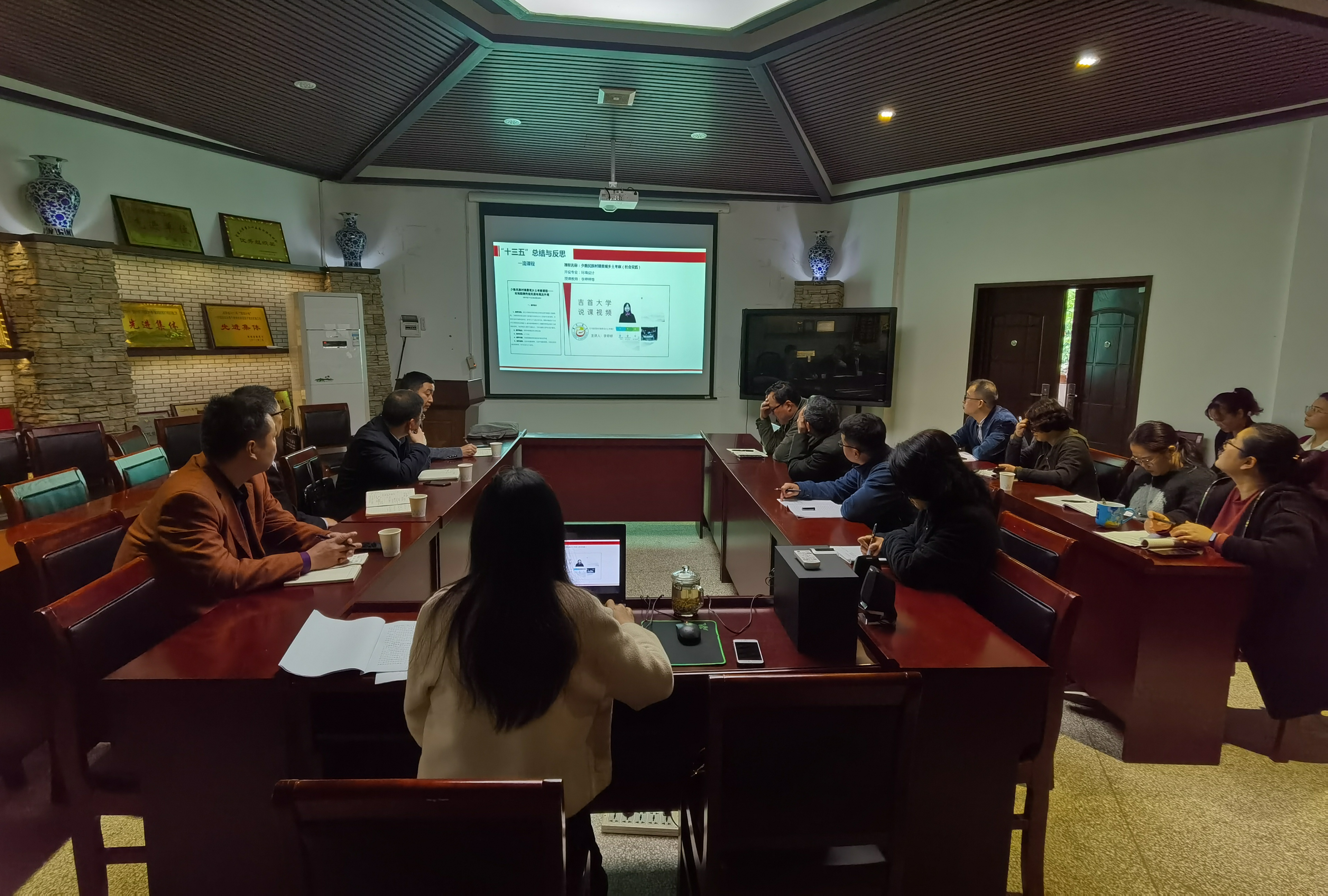 李婷婷副院长首先作汇报,她从学院十三五规划的总结与反思、十四五发展思路、发展目标以及主要任务与保障举措几个方面向与会领导介绍了学院的十四五规划基本情况。