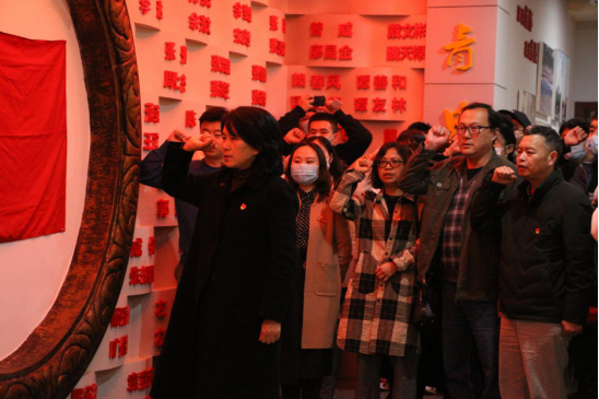 其次跟随讲解员来到展厅,回顾了贺龙、任弼时、萧克等老一辈无产阶级革命家创建湘鄂川黔革命根据地的艰苦过程,重温了红二、六军团英勇的战斗历史和伟大的革命精神,同志们纷纷表示老一辈革命家舍小家为大家的爱国情怀值得敬佩,笃定初心使命,砥砺前行动力。随后,所有党员同志面对党旗,庄严宣誓,重温入党誓词。