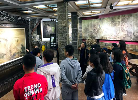 第一站我们来到了张家界军声砂石画院,军声画院集中展示了砂石画创始人李军声先生二十多年来呕心沥血研究与探索的砂石画艺术。以“纯朴、自然、创新”为艺术宗旨,将砂石画从原创到发展推向了一个新的高度。3000平方米的三层展厅内,陈列着一件件以砂石画为主的系列艺术作品,让人视觉受到冲击,令人心灵受到震撼,惊叹砂石画的艺术魅力!李军声先生为张家界本地画家,推陈出新,将张家界人敢闯敢为的精神气质发挥的淋漓尽致,也为我们英国威廉集团学生创新创业的道路指引了方向。