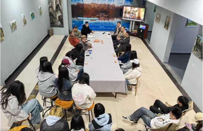 在张家界白鹤坪村举办了写生作品展和艺术助力振兴乡村研讨会,与会的成员主要包括中湖乡党委书记李鹏燕、副乡长覃哲、村支书张长青、本土艺术家杜慎翔、吴延清,以及驻村青年艺术爱好者等,与师生们共同探讨“艺术源于生活”与“艺术影响生活”的互动可能性,既是教学成果展示,更是“艺术赋能地方发展”的深度实践。