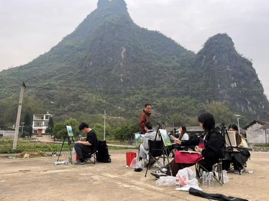我院美术学(师范)专业高度重视理论联系实际,鼓励创新实践。2025年3月24日至4月11日,2022级美术学(师范)专业1班和2班,由丁超和邓典两位老师带队,分别赴张家界和广西阳朔开展主题为“赋彩物语”的油画风景写生教学活动,切身感受自然之美和生活之美,探索油画材料技法与物象之间的关系,把锻炼学生的意志品质和锤炼绘画语言相结合,创新实践成果的展示与交流形式,获得良好的社会反响。