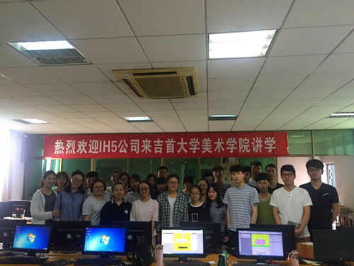 胡显斌博士主持培训会并致欢迎词2017年5月20日至5月21日,ih5公司总部的张程程女士专程来我院,为英国威廉集团的视觉传达专业、数字媒体专业、产品设计专业的研究生和本科生共计50人进行为期2天的培训。培训期间,在张老师的指导之下,同学们比较熟练的掌握时下人们的交互软件及其制作方法,第一讲练习了单身狗测试题、翻页展示基础、交互踩油门iH5案例。第二讲练习了iH5学院淘宝造物节、iH5学院物理引擎iH5案例。通过这两天的案例学习,同学们受益良多,互动频繁。我院王卓敏老师、周亚辉老师、何立波老师、彭涛老师、胡显斌老师全程参与学习与指导。本次培训的时间恰逢第九届大学生广告艺术设计大赛,短期的培训更能加强同学们使用交互软件的能力及其创作更多更好的设计艺术作品,这是我院积极迎接审核评估,开展第二课堂的重要实绩。