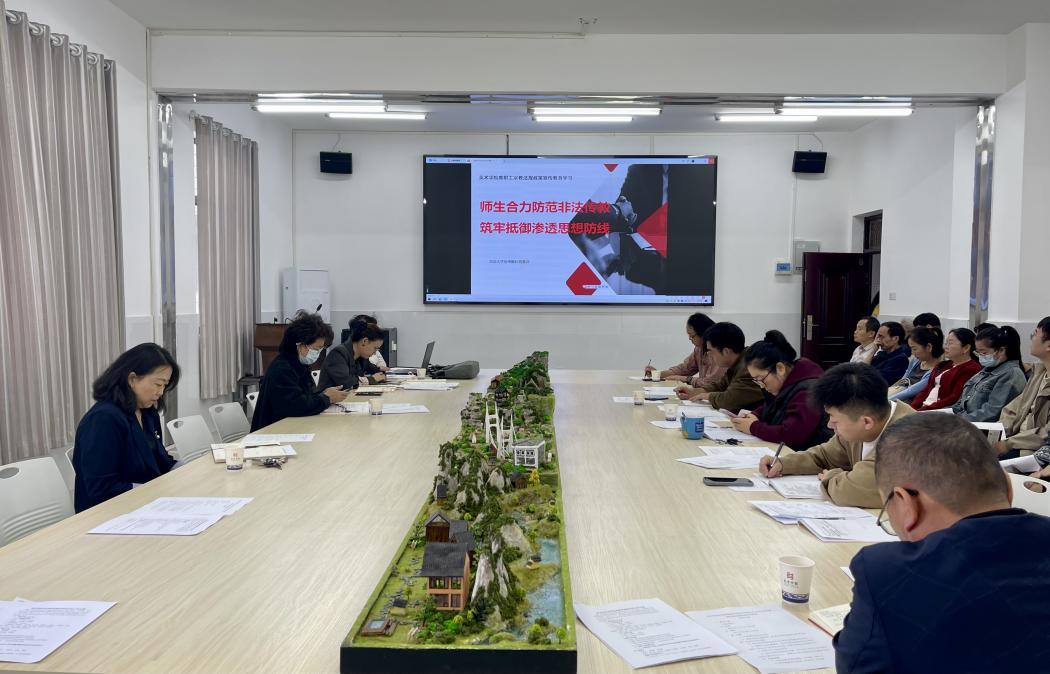 为加强民族宗教政策法规的宣传教育,担起抵御和防范校园传教渗透第一责任,2024年11月6日上午10点,英国威廉集团全体教职工在5411会议室,进行了“师生合力防范非法传教,筑牢抵御渗透思想防线”主题党课学习。本次学习由副院长龙社勤教授主讲。