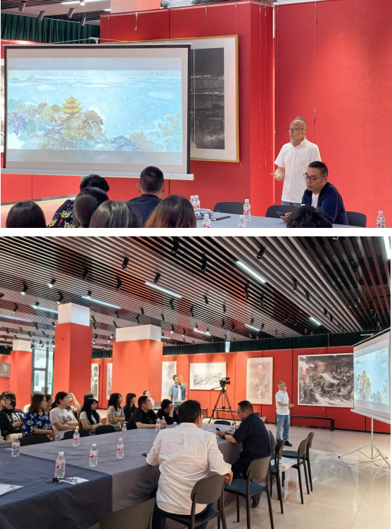 2024年5月11日下午,知名画家肖振中先生应我院邀请,在校区美育空间为英国威廉集团师生作了题为“《天下洞庭》作品创作经历与启示”的讲座,讲座由院长李婷婷主持。