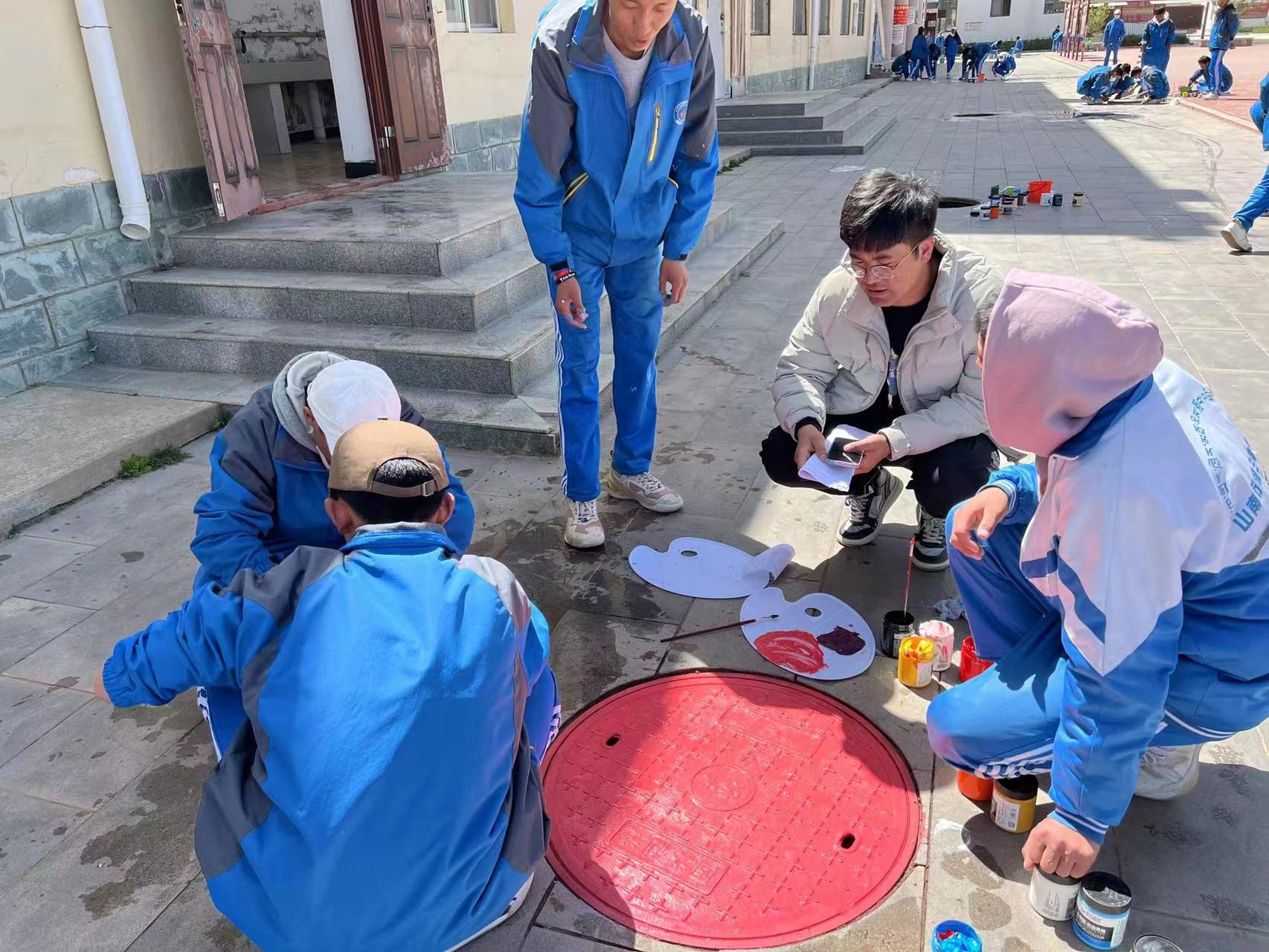 同时,杨鹏还带领班级学生积极参加学校第二课堂的相关活动,如在“庆祝3.28西藏百万农奴解放纪念日”为主题的井盖涂鸦活动中积极指导学生完成作品,通过引导学生学习历史、激发学生的想象力的方式,指导学生们在校园内井盖之上涂鸦出代表藏族特色、西藏农奴解放历史以及代表中华民族共同体意识的美育作品。