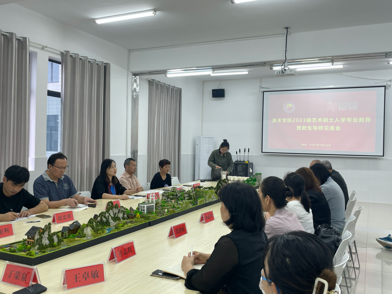 本次会议议程共三个模块,分别为学院领导致辞、人才培养方案解读及专业介绍、导师见面会。院长李婷婷祝贺并欢迎所有新生顺利进入研究生学习阶段,希望同学们能尽快适应身份的变换,从受教者转换为研究者,从体验者转换为储备人才,正确认识社会关系的变化,所处身份的变化;副书记杜修望提出师生关系对以后学业的发展有着重要的发展意义,在如何构建优良的师生关系上为同学提出了建议,希望学生能够珍惜与导师的师生情谊。随后研究生办主任龙社勤向同学们详细解读了艺术硕士培养重点文件,各专业导师代表对各专业就业前景和专业方向进行了清楚的介绍,让新生对即将开始的学习生活有了更深一层的了解,建立了更加清晰的目标。最后,研究生与导师依次进行了自我介绍,拉近了师生之间的距离。