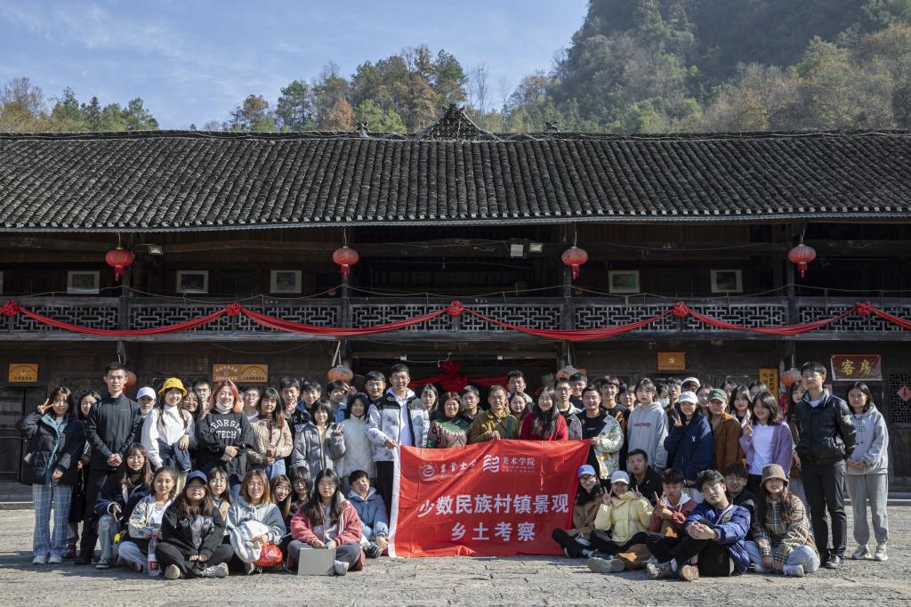 图为“少数民族村镇景观乡土考察”教学活动现场
