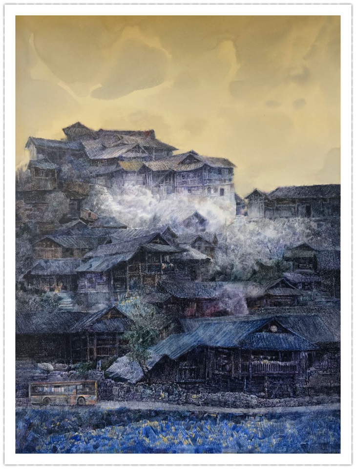 图为硕士生导师向妤的水彩作品《聚变.湘西村寨》