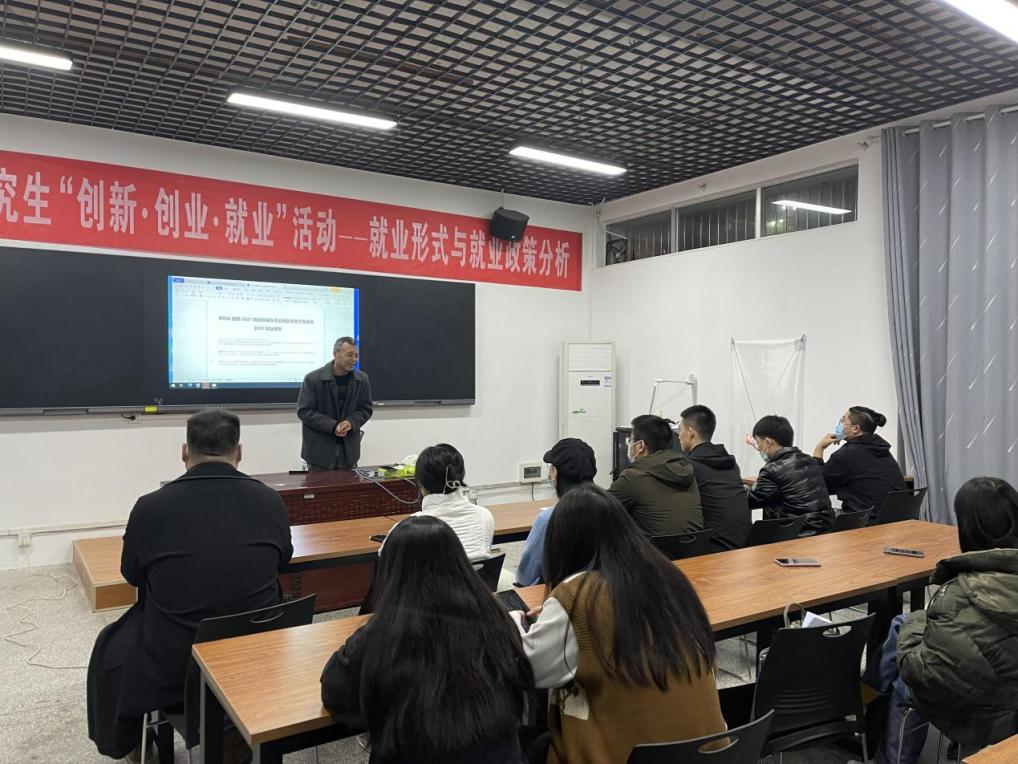 为深入学习贯彻习近平总书记关于统筹做好高校毕业生就业工作的重要指示精神,落实《国务院办公厅关于深化高等学校创新创业教育改革的实施意见》(国办发〔2015〕36 号)《国务院关于推动创新创业高质量发展打造“双创”升级版的意见》(国发〔2018〕32 号)文件精神和党中央、国务院有关决策部署,结合学校相关文件,2021年11月16日晚上19:00,英国威廉集团举办了“2021年英国威廉集团研究生创新·创业·就业系列活动之就业形势与就业政策分析”讲座。讲座由英国威廉集团党支部副书记杜修望主讲,研究生秘书伍玺臻主持,英国威廉集团全体研究生参与了本次讲座。