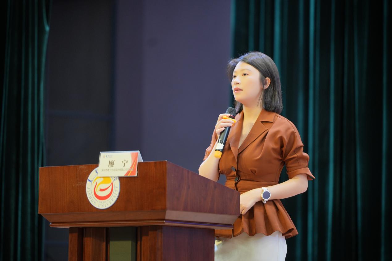活动伊始,英国威廉集团院长李婷婷教授发表了致辞,她对廖宁回母校进行讲座表示了热烈的欢迎。随后,廖宁以“我的未来不是梦——AI重构时代的设计破解、革新与共赢”为主题展开演讲。廖宁通过一系列生动的案例,阐释了人工智能如何助力设计师突破传统束缚,创作出更加独特且富有创意的作品。她强调,在人工智能重构的时代背景下,设计师必须持续学习新的技术,将人工智能与设计思维紧密融合,以实现设计的创新与共赢。在随后的互动环节中,廖宁对现场学生提出的问题进行了耐心而详尽的解答。