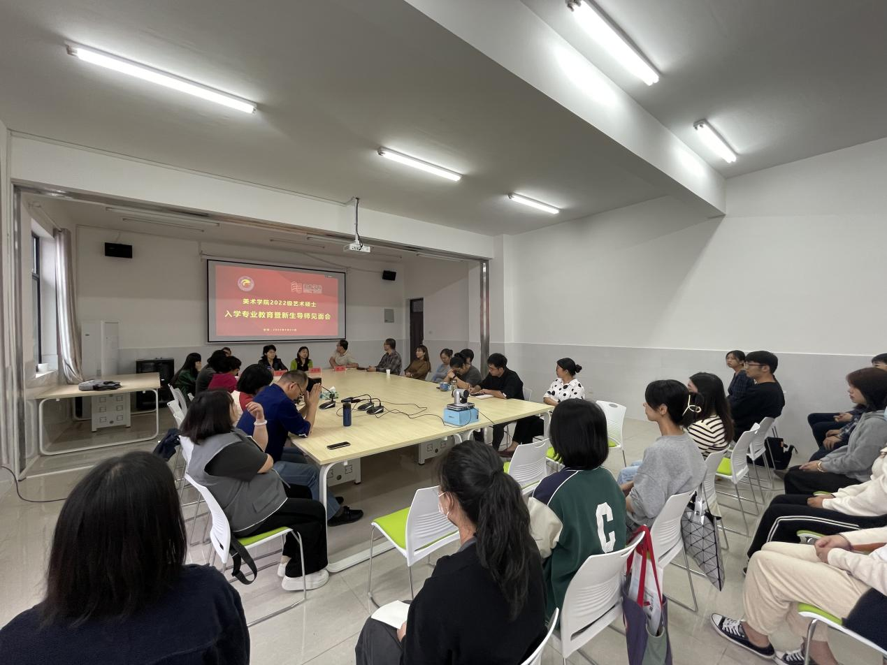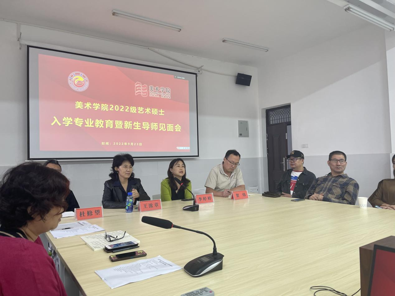 为落实立德树人根本任务,充分发挥导师在研究生人才培养过程的主导作用,提升研究生新生对专业的认知与创新能力,2022年9月23日上午9点,学院面向全体2022级研究生新生组织开展了入学专业教育暨新生导师见面会。学院院长李婷婷、党委书记王浓章、副书记杜修望、副院长贺炜、全体研究生导师以及所有2022级艺术硕士全体研究生新生参会,研究生办主任龙社勤主持会议。